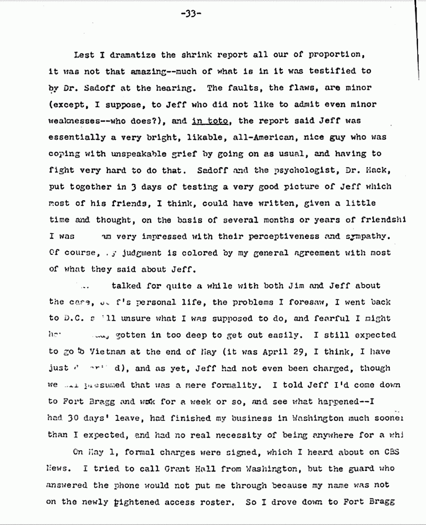 July 6, 1971: Journal of Michael Malley re: his "last uncolicited interference" with the MacDonald case, p. 33 of 102