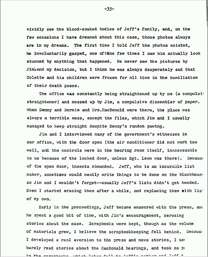 July 6, 1971: Journal of Michael Malley re: his "last uncolicited interference" with the MacDonald case, p. 35 of 102