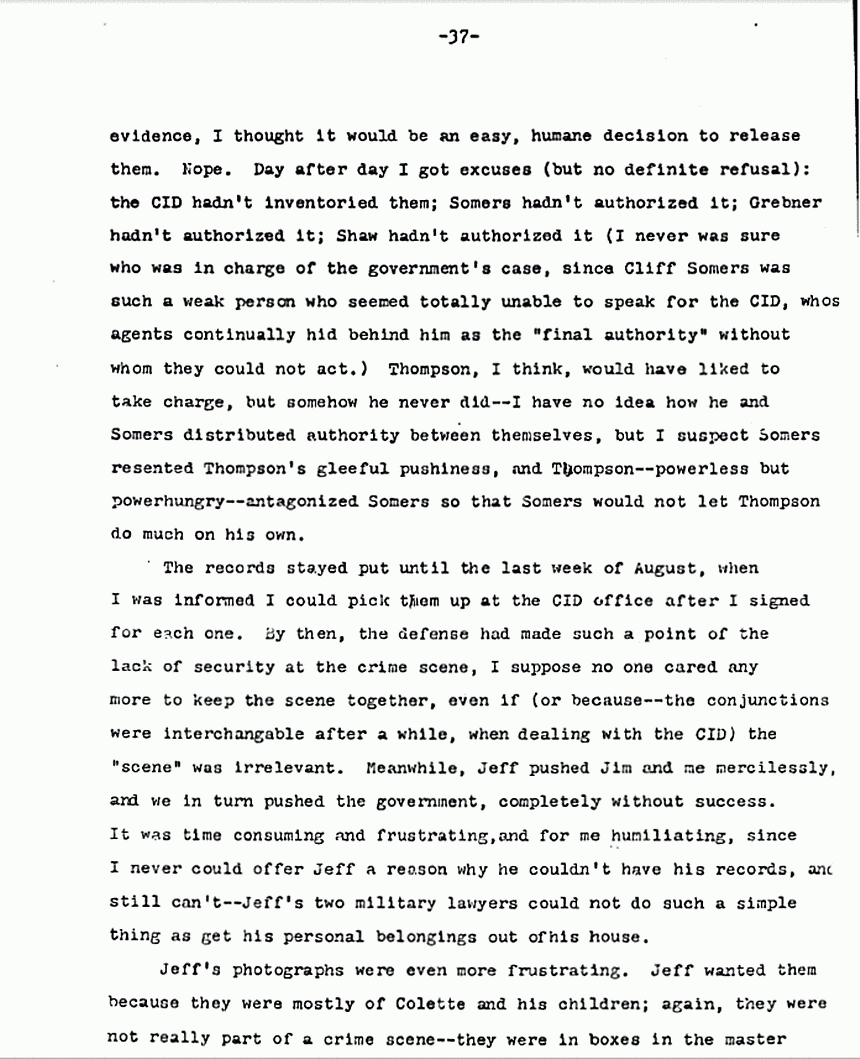 July 6, 1971: Journal of Michael Malley re: his "last uncolicited interference" with the MacDonald case, p. 37 of 102