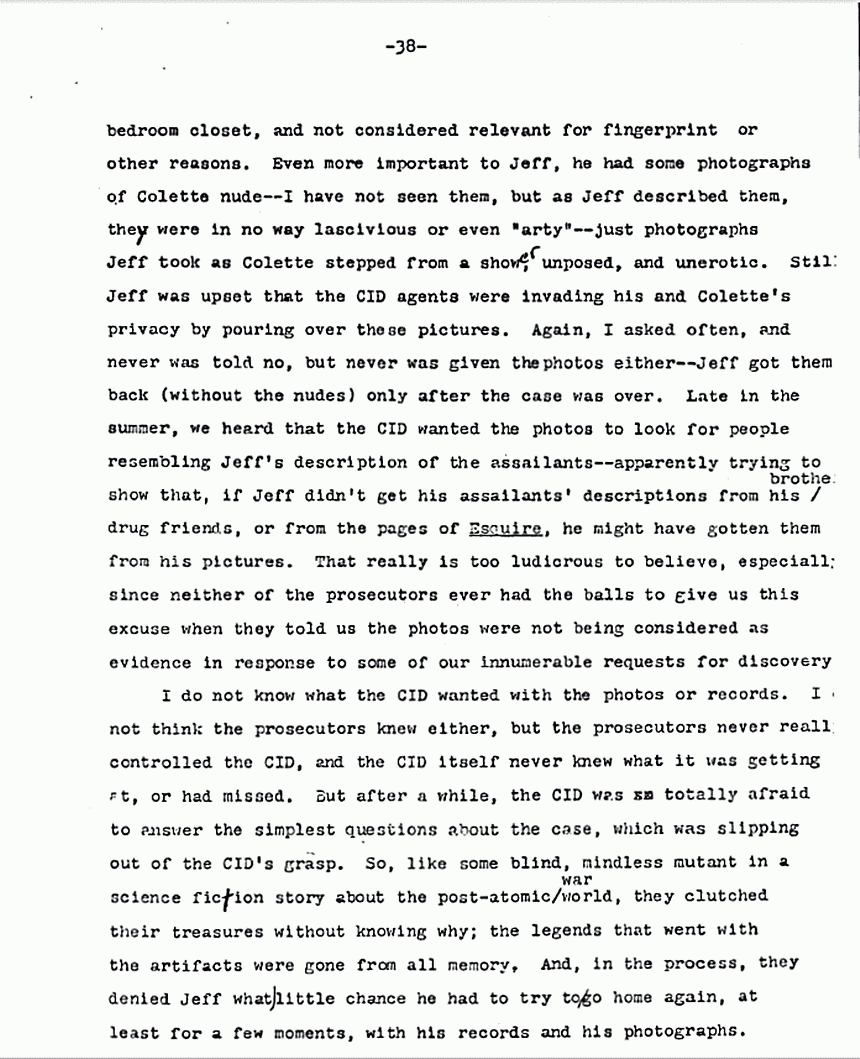 July 6, 1971: Journal of Michael Malley re: his "last uncolicited interference" with the MacDonald case, p. 38 of 102