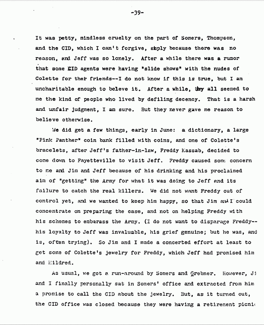 July 6, 1971: Journal of Michael Malley re: his "last uncolicited interference" with the MacDonald case, p. 39 of 102