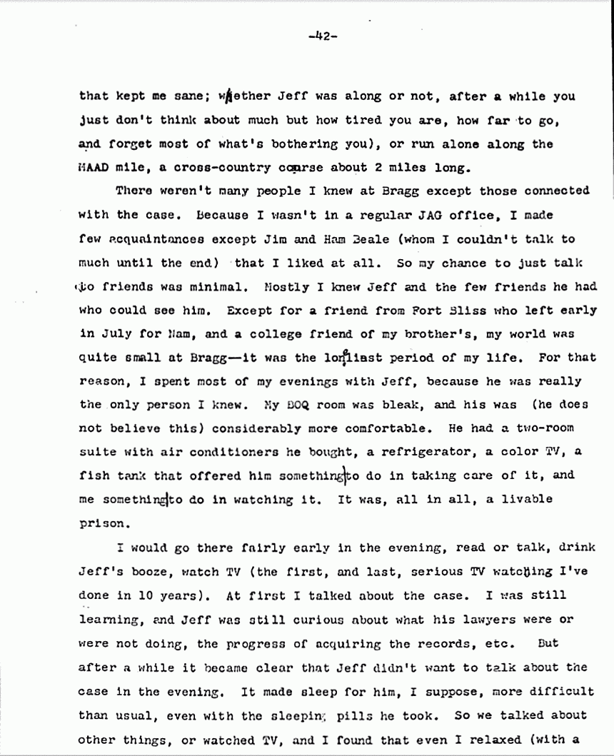 July 6, 1971: Journal of Michael Malley re: his "last uncolicited interference" with the MacDonald case, p. 42 of 102