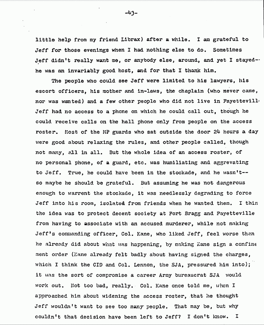 July 6, 1971: Journal of Michael Malley re: his "last uncolicited interference" with the MacDonald case, p. 43 of 102