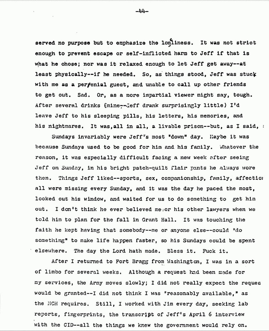 July 6, 1971: Journal of Michael Malley re: his "last uncolicited interference" with the MacDonald case, p. 44 of 102