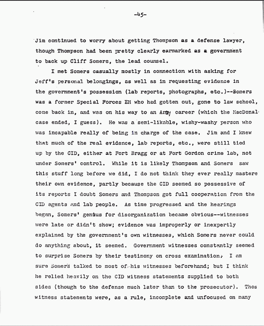 July 6, 1971: Journal of Michael Malley re: his "last uncolicited interference" with the MacDonald case, p. 45 of 102