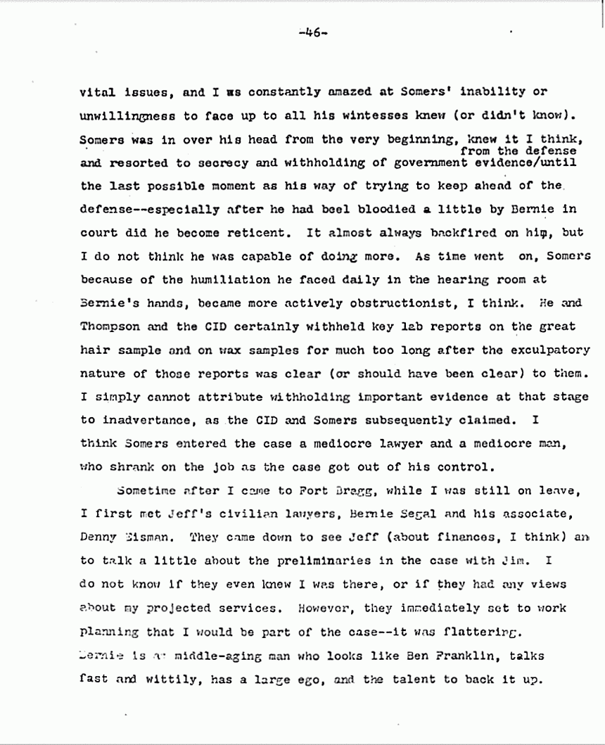 July 6, 1971: Journal of Michael Malley re: his "last uncolicited interference" with the MacDonald case, p. 46 of 102