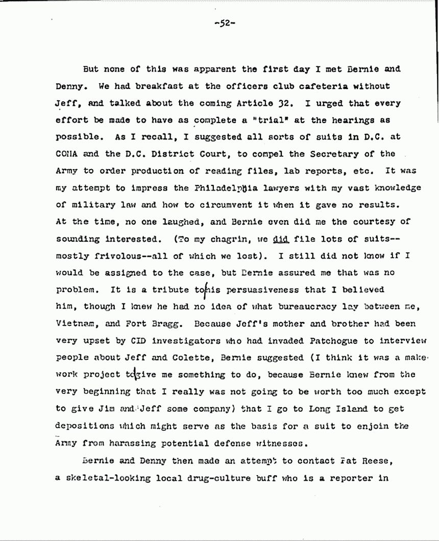July 6, 1971: Journal of Michael Malley re: his "last uncolicited interference" with the MacDonald case, p. 52 of 102