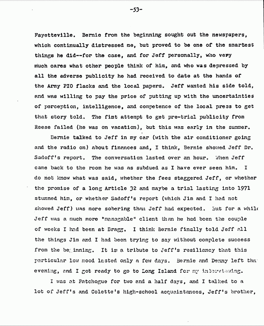 July 6, 1971: Journal of Michael Malley re: his "last uncolicited interference" with the MacDonald case, p. 53 of 102