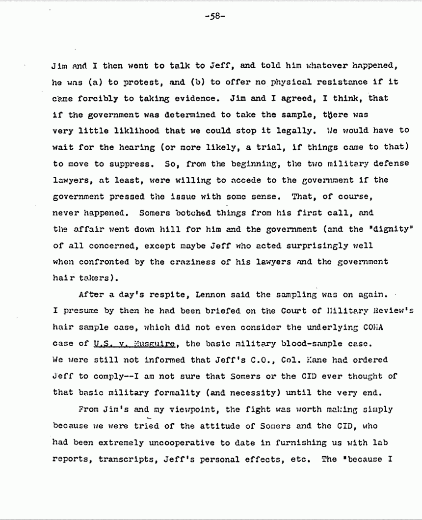 July 6, 1971: Journal of Michael Malley re: his "last uncolicited interference" with the MacDonald case, p. 58 of 102