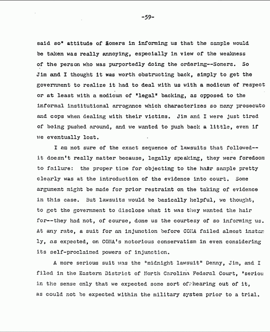 July 6, 1971: Journal of Michael Malley re: his "last uncolicited interference" with the MacDonald case, p. 59 of 102