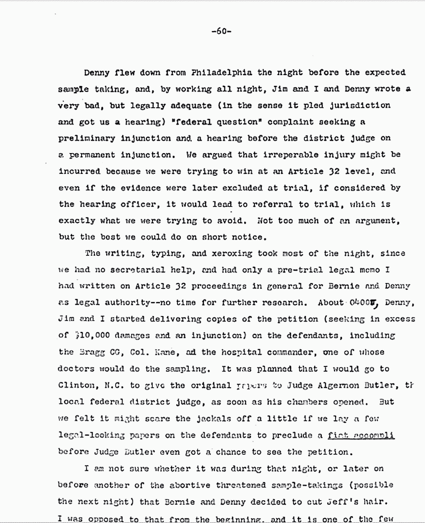 July 6, 1971: Journal of Michael Malley re: his "last uncolicited interference" with the MacDonald case, p. 60 of 102