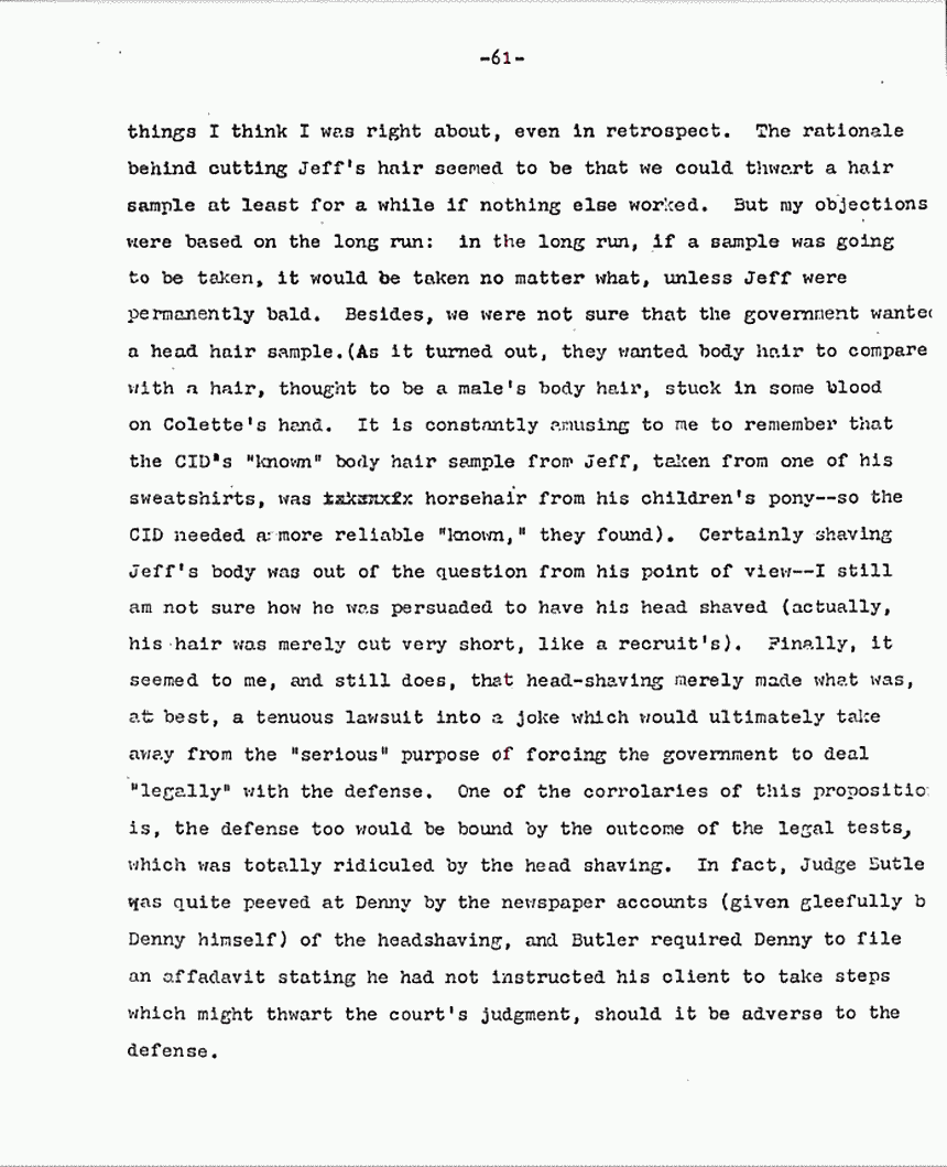 July 6, 1971: Journal of Michael Malley re: his "last uncolicited interference" with the MacDonald case, p. 61 of 102