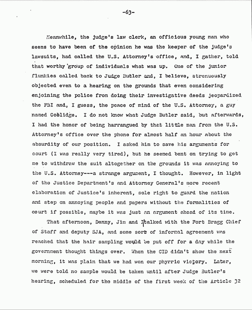 July 6, 1971: Journal of Michael Malley re: his "last uncolicited interference" with the MacDonald case, p. 63 of 102