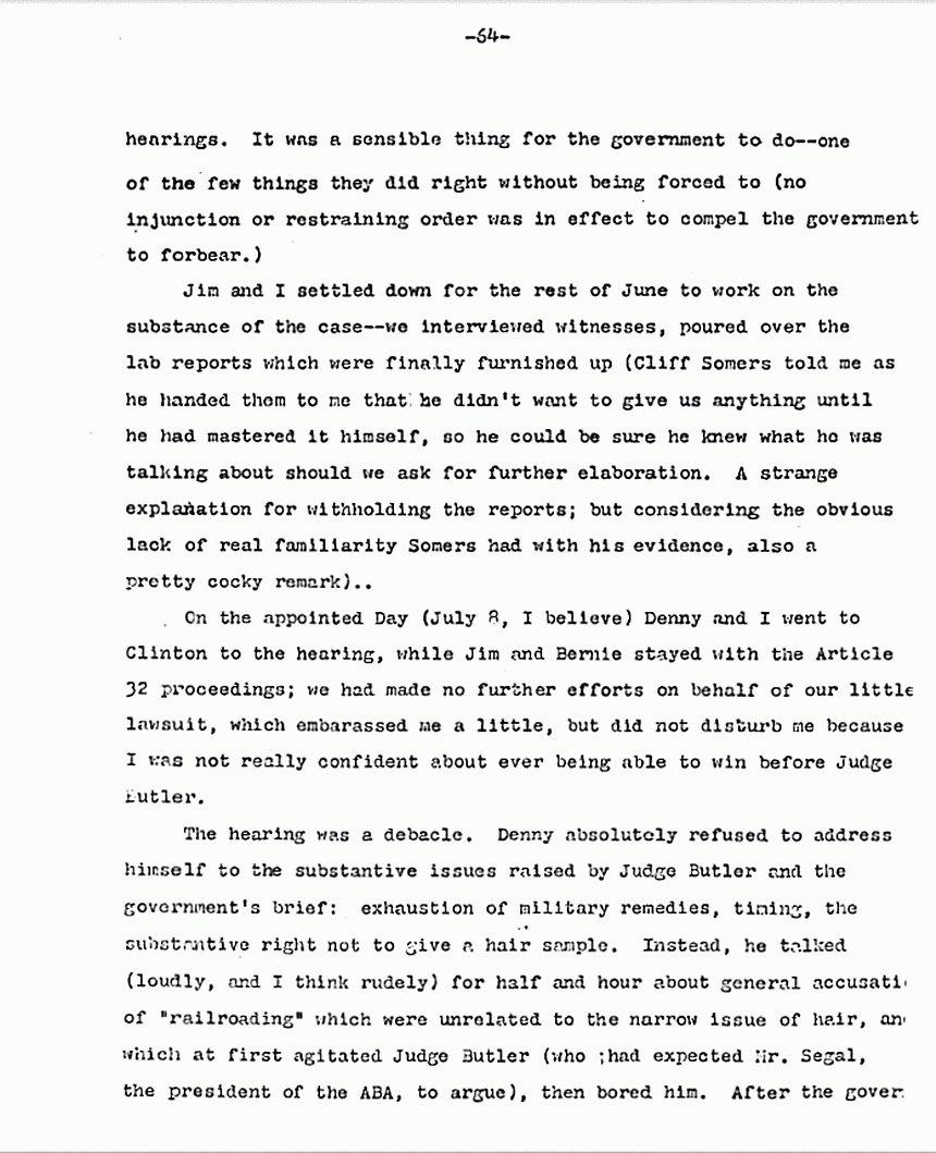 July 6, 1971: Journal of Michael Malley re: his "last uncolicited interference" with the MacDonald case, p. 64 of 102
