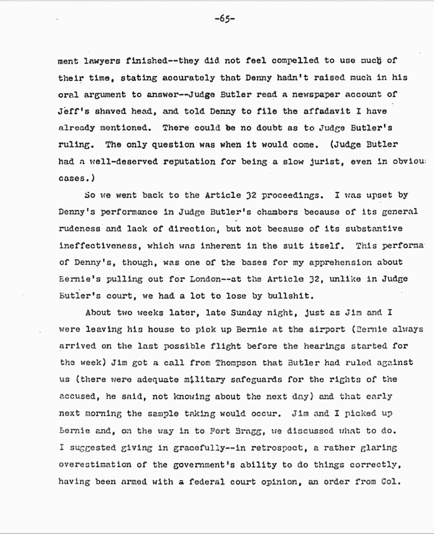 July 6, 1971: Journal of Michael Malley re: his "last uncolicited interference" with the MacDonald case, p. 65 of 102
