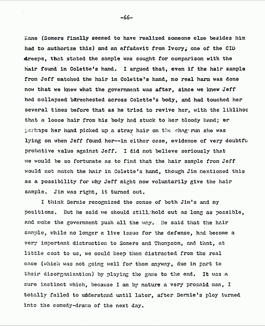 July 6, 1971: Journal of Michael Malley re: his "last uncolicited interference" with the MacDonald case, p. 66 of 102