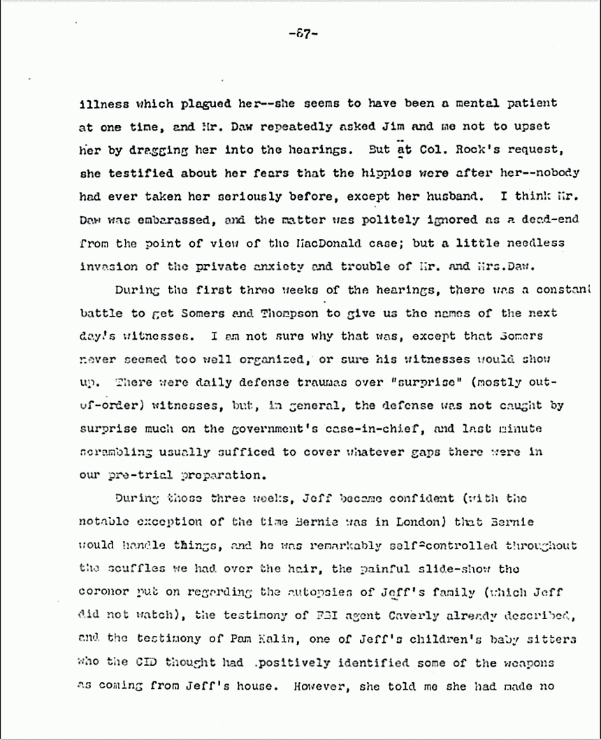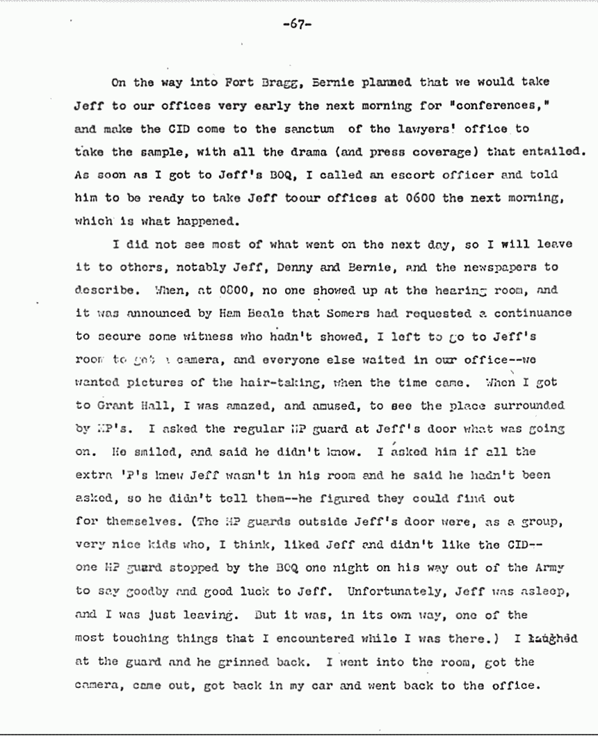 July 6, 1971: Journal of Michael Malley re: his "last uncolicited interference" with the MacDonald case, p. 67 of 102