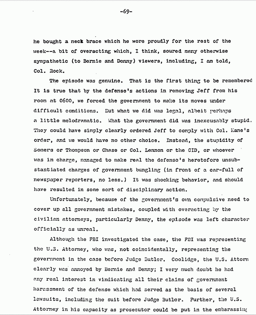 July 6, 1971: Journal of Michael Malley re: his "last uncolicited interference" with the MacDonald case, p. 69 of 102