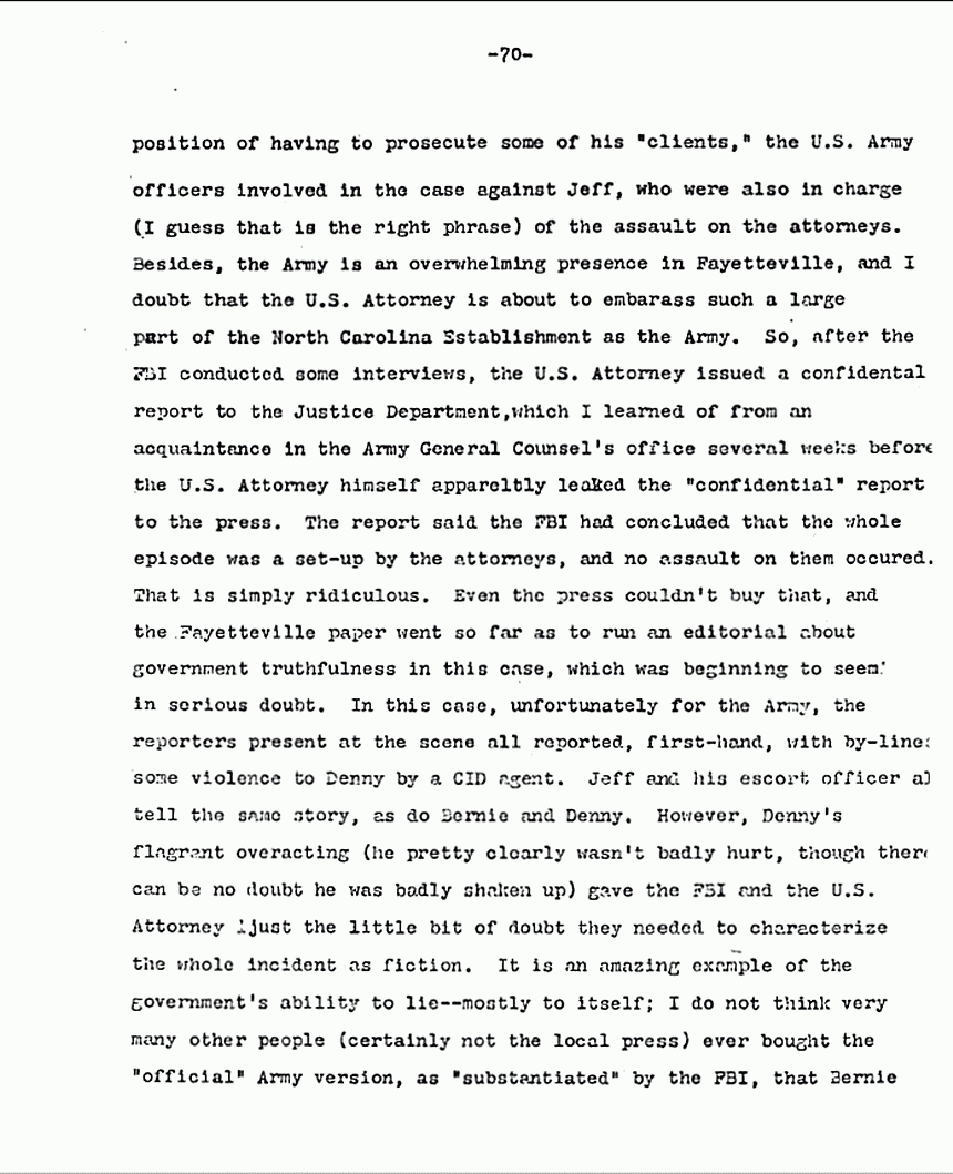 July 6, 1971: Journal of Michael Malley re: his "last uncolicited interference" with the MacDonald case, p. 70 of 102