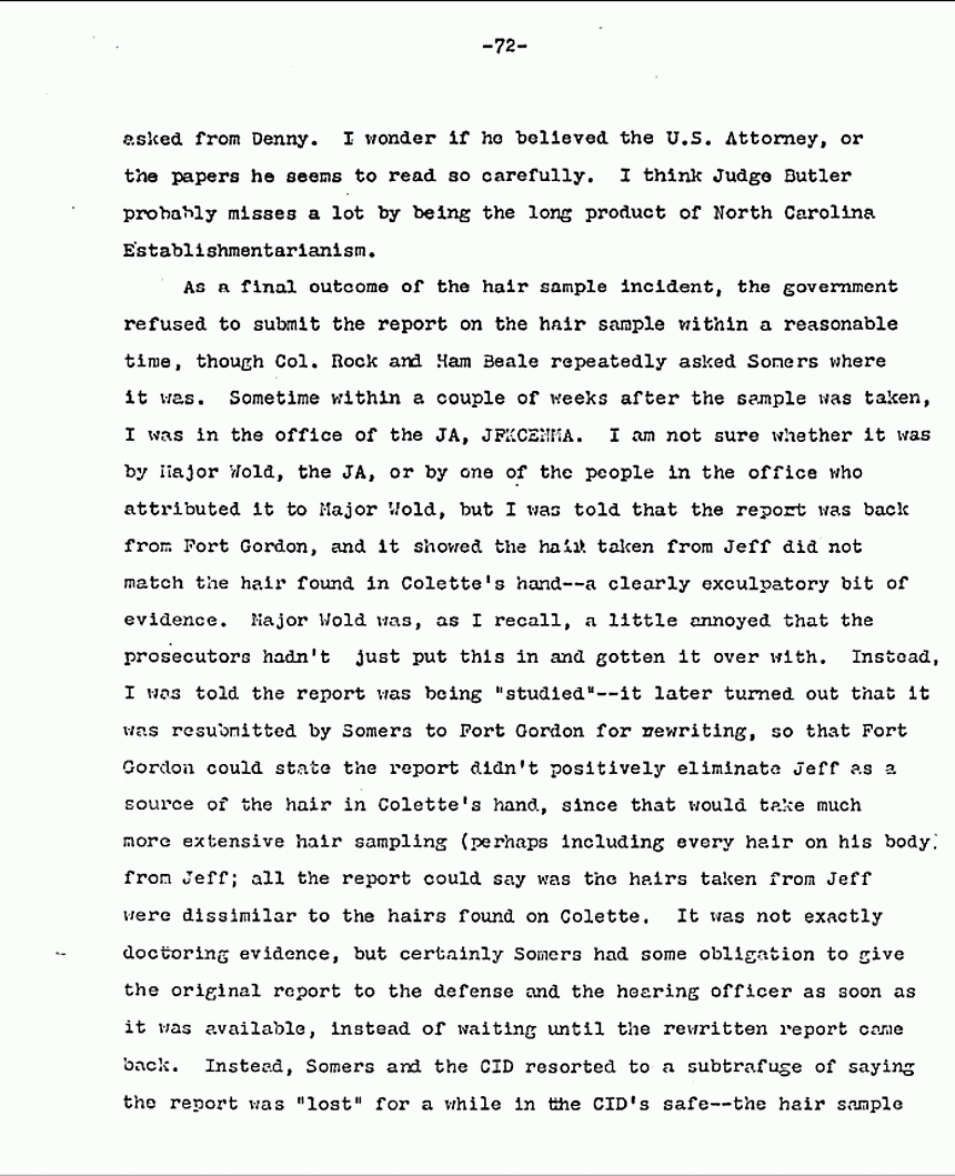 July 6, 1971: Journal of Michael Malley re: his "last uncolicited interference" with the MacDonald case, p. 72 of 102