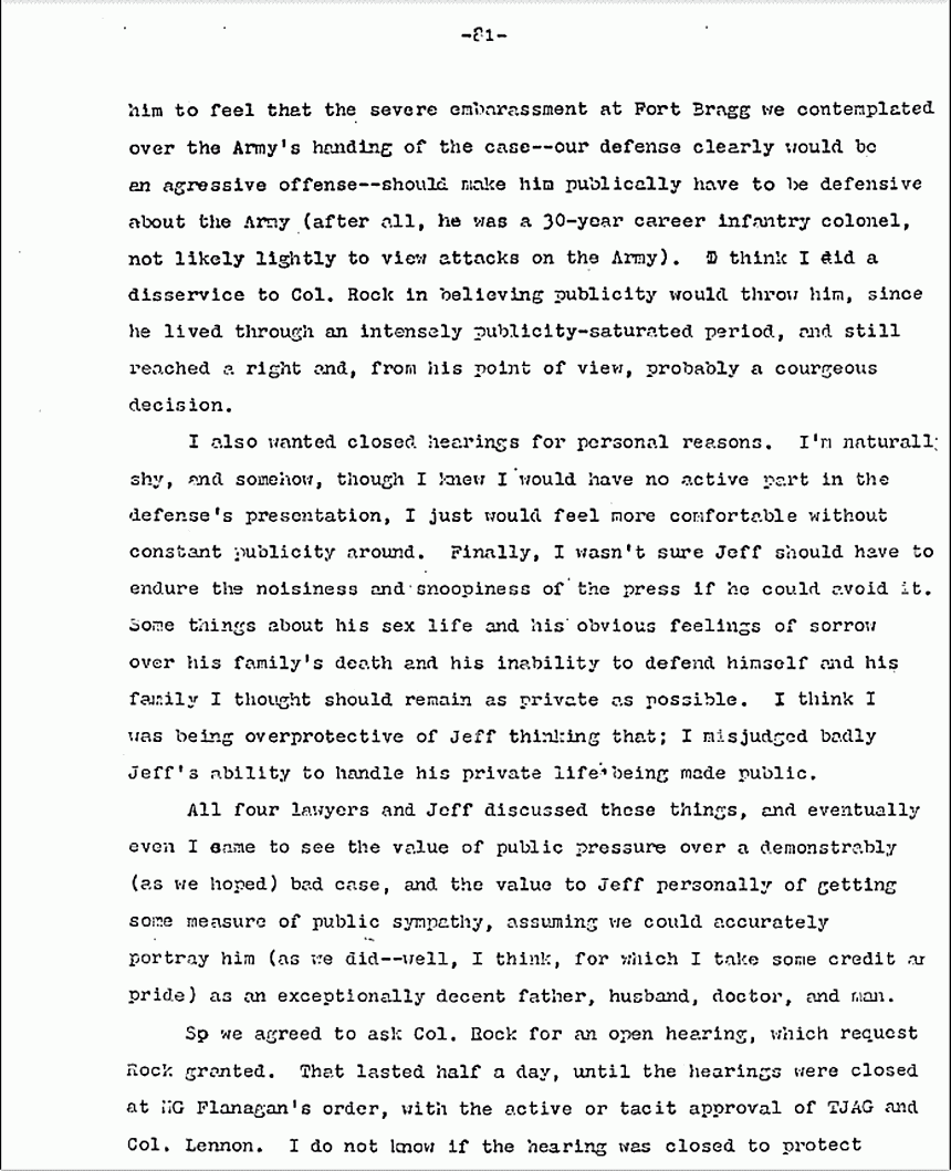 July 6, 1971: Journal of Michael Malley re: his "last uncolicited interference" with the MacDonald case, p. 81 of 102