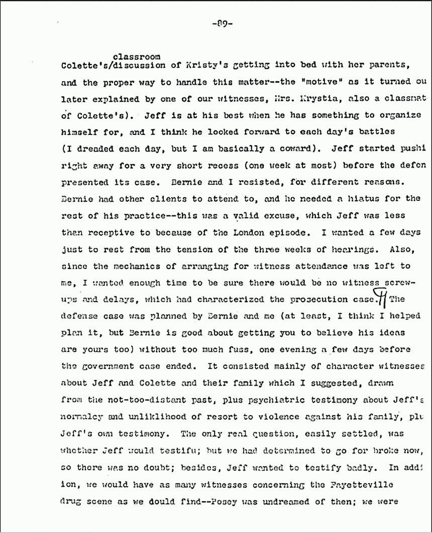 July 6, 1971: Journal of Michael Malley re: his "last uncolicited interference" with the MacDonald case, p. 89 of 102