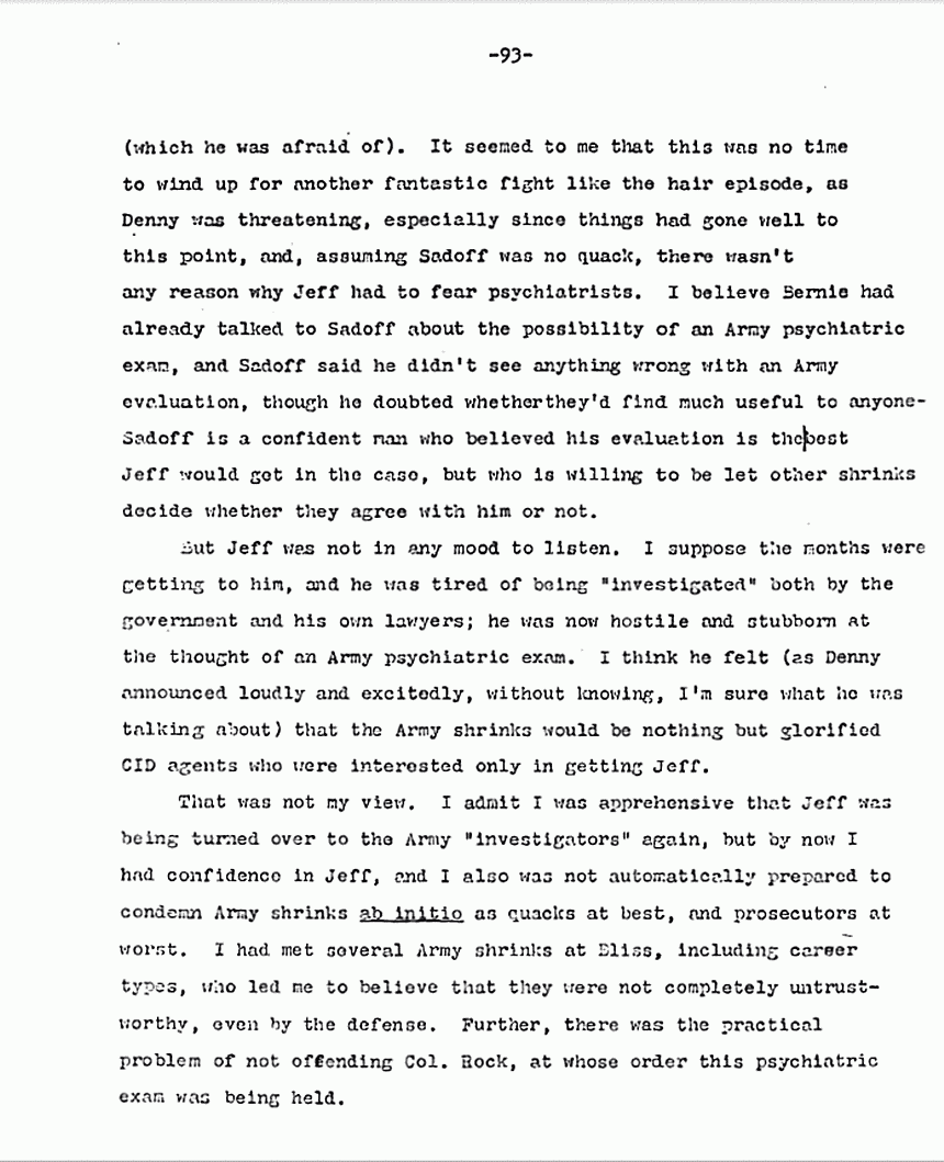 July 6, 1971: Journal of Michael Malley re: his "last uncolicited interference" with the MacDonald case, p. 93 of 102
