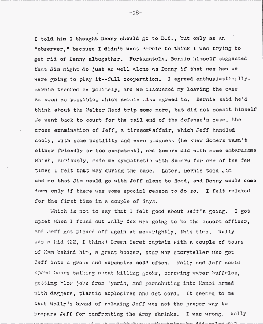 July 6, 1971: Journal of Michael Malley re: his "last uncolicited interference" with the MacDonald case, p. 98 of 102