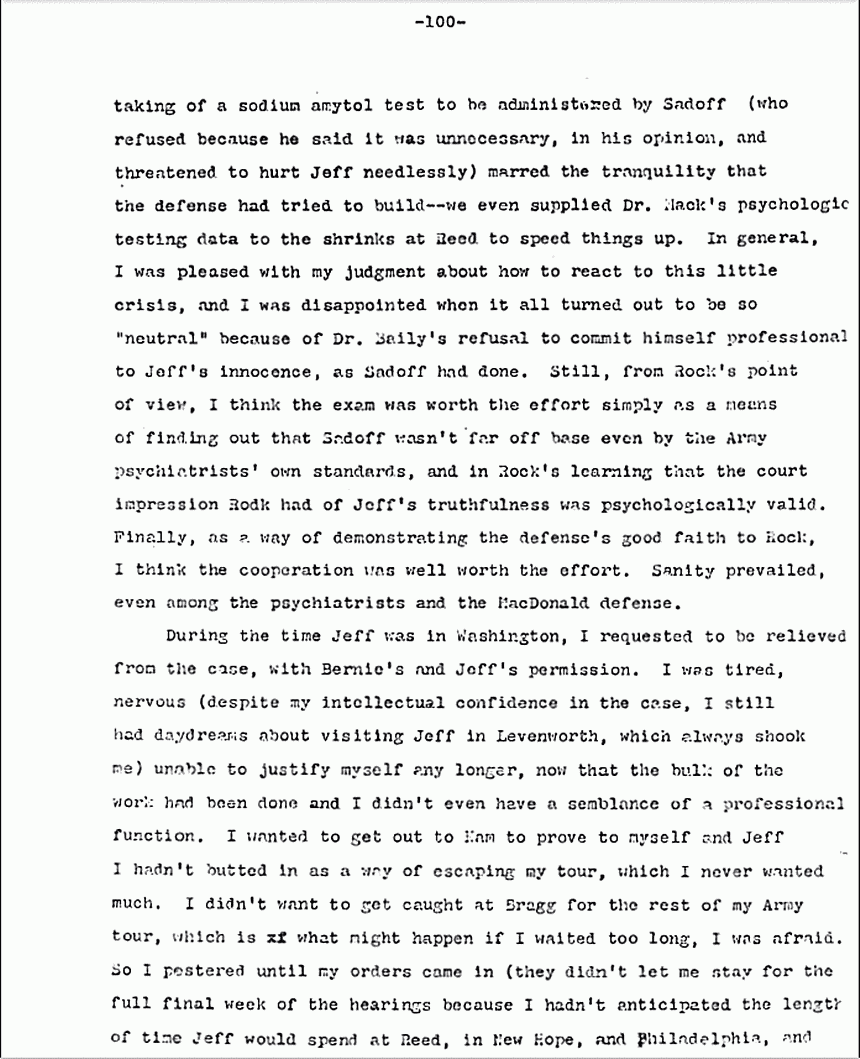 July 6, 1971: Journal of Michael Malley re: his "last uncolicited interference" with the MacDonald case, p. 100 of 102
