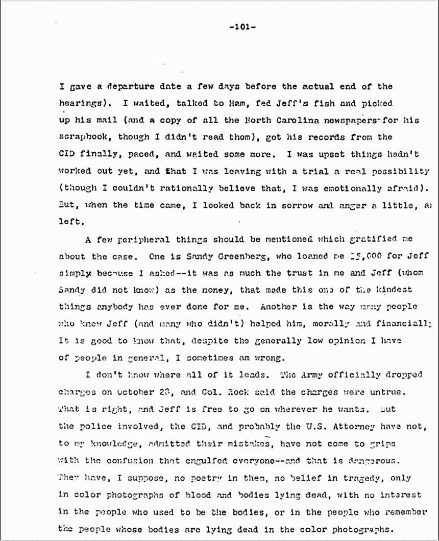 July 6, 1971: Journal of Michael Malley re: his "last uncolicited interference" with the MacDonald case, p. 101 of 102