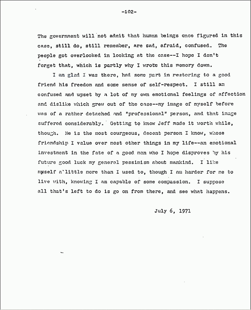July 6, 1971: Journal of Michael Malley re: his "last uncolicited interference" with the MacDonald case, p. 102 of 102