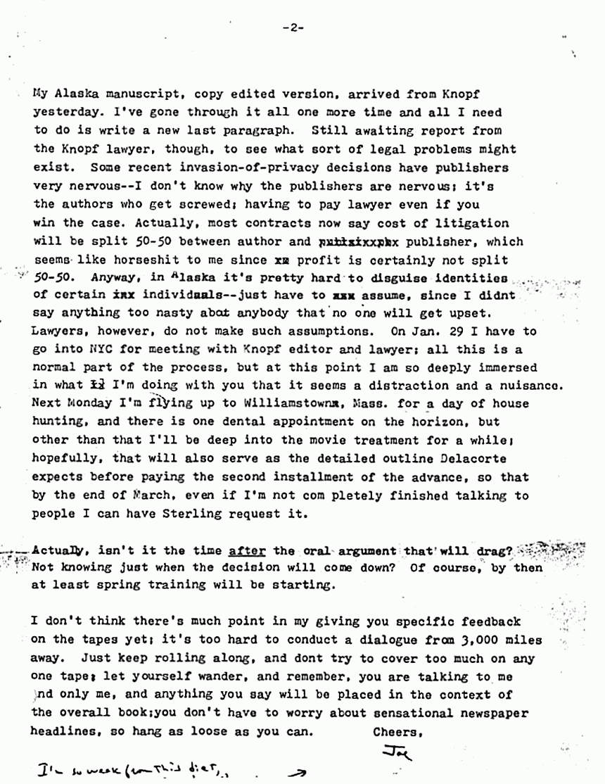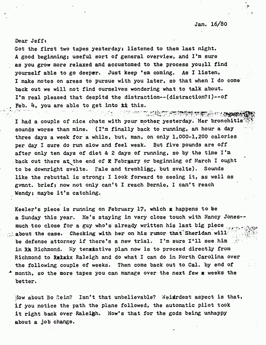 Letter from Joe McGinniss to Jeffrey MacDonald re: first tapes for