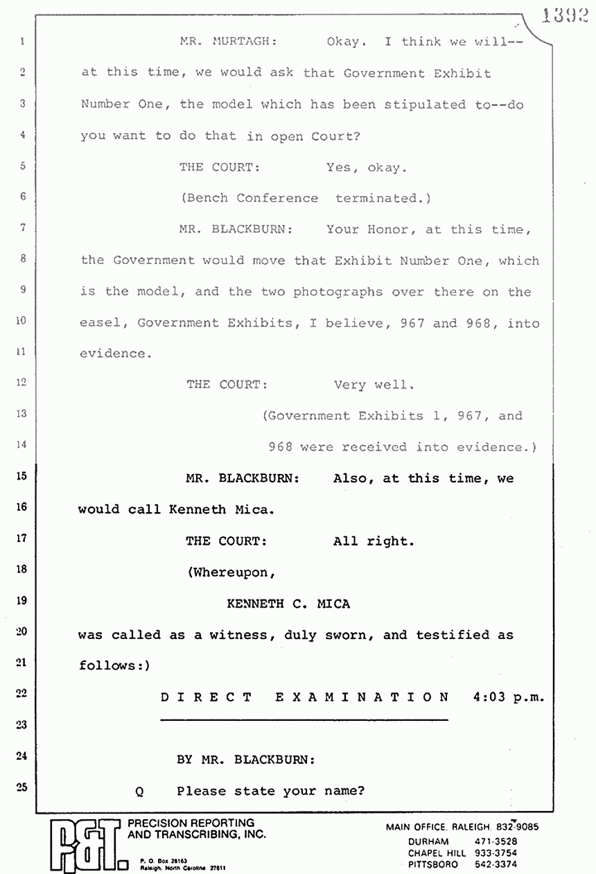 MR. BLACKBURN: Also, at this time, we would call Kenneth Mica.