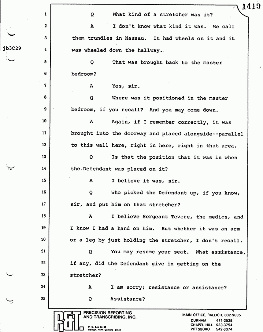 Q And during the entire time that you were there, what, if anything, besides the Defendant Dr. MacDonald did you touch?