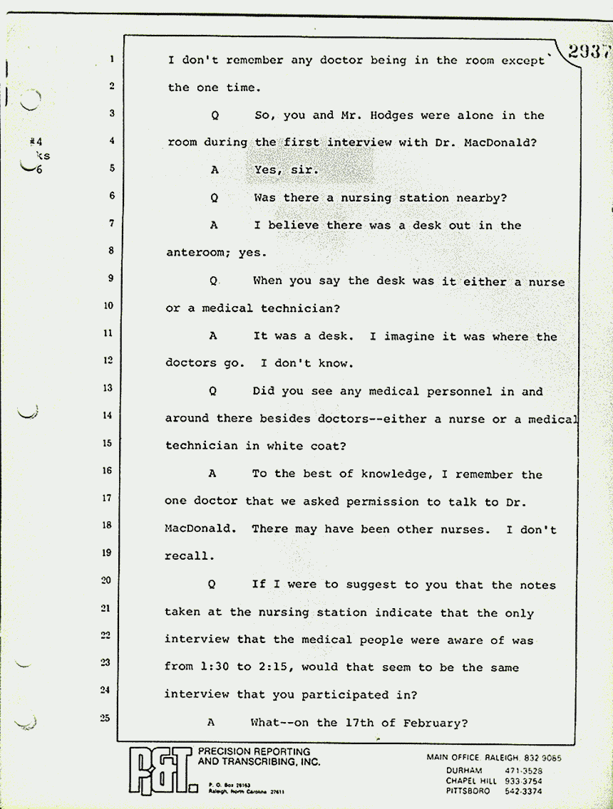 A The best I can recall, we asked the doctor on duty -- I don't remember who it was now. We identified ourselves again and asked him if we could talk to Dr. MacDonald.