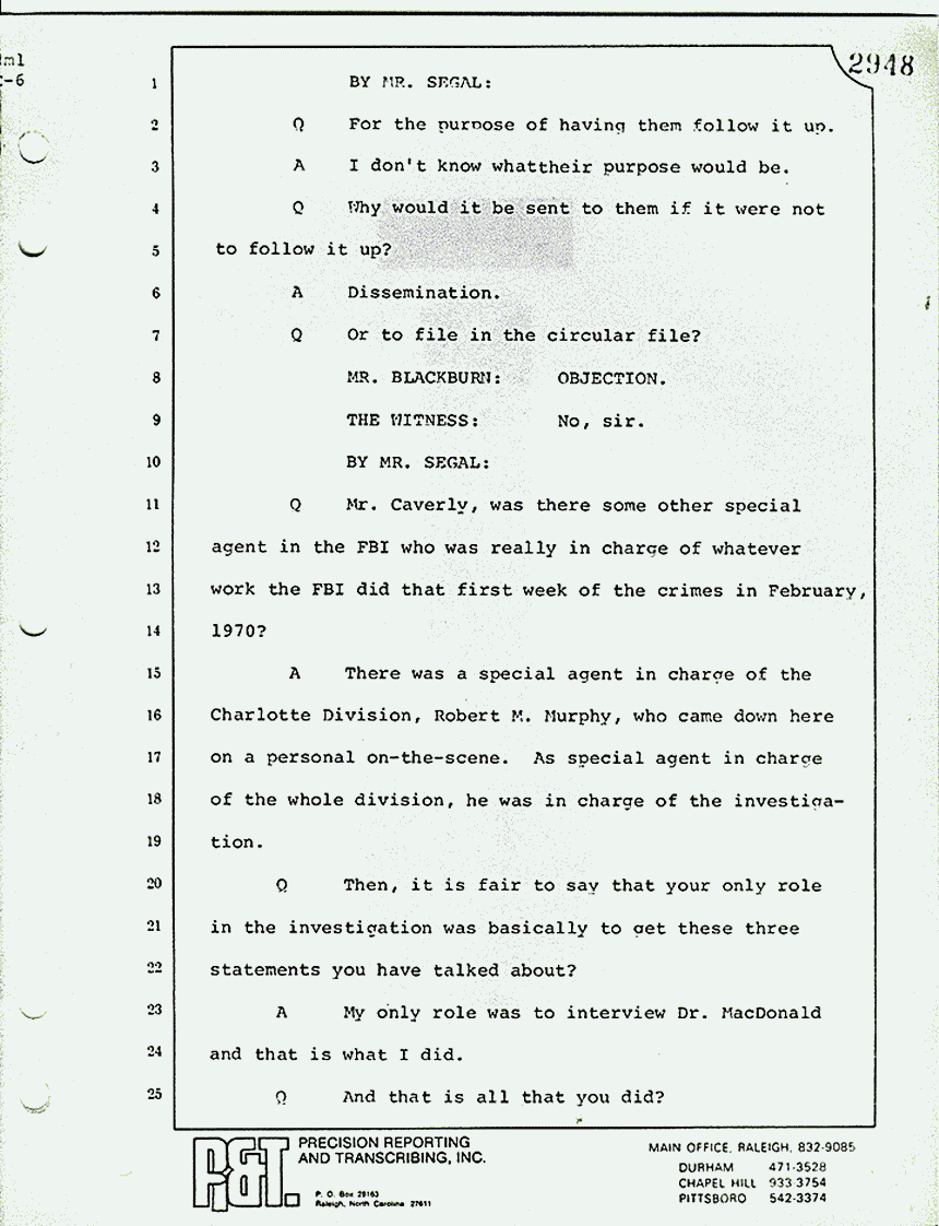 Q Mr. Caverly, was there some other special agent in the FBI who was really in charge of whatever work the FBI did that first week of the crimes in February, 1970?