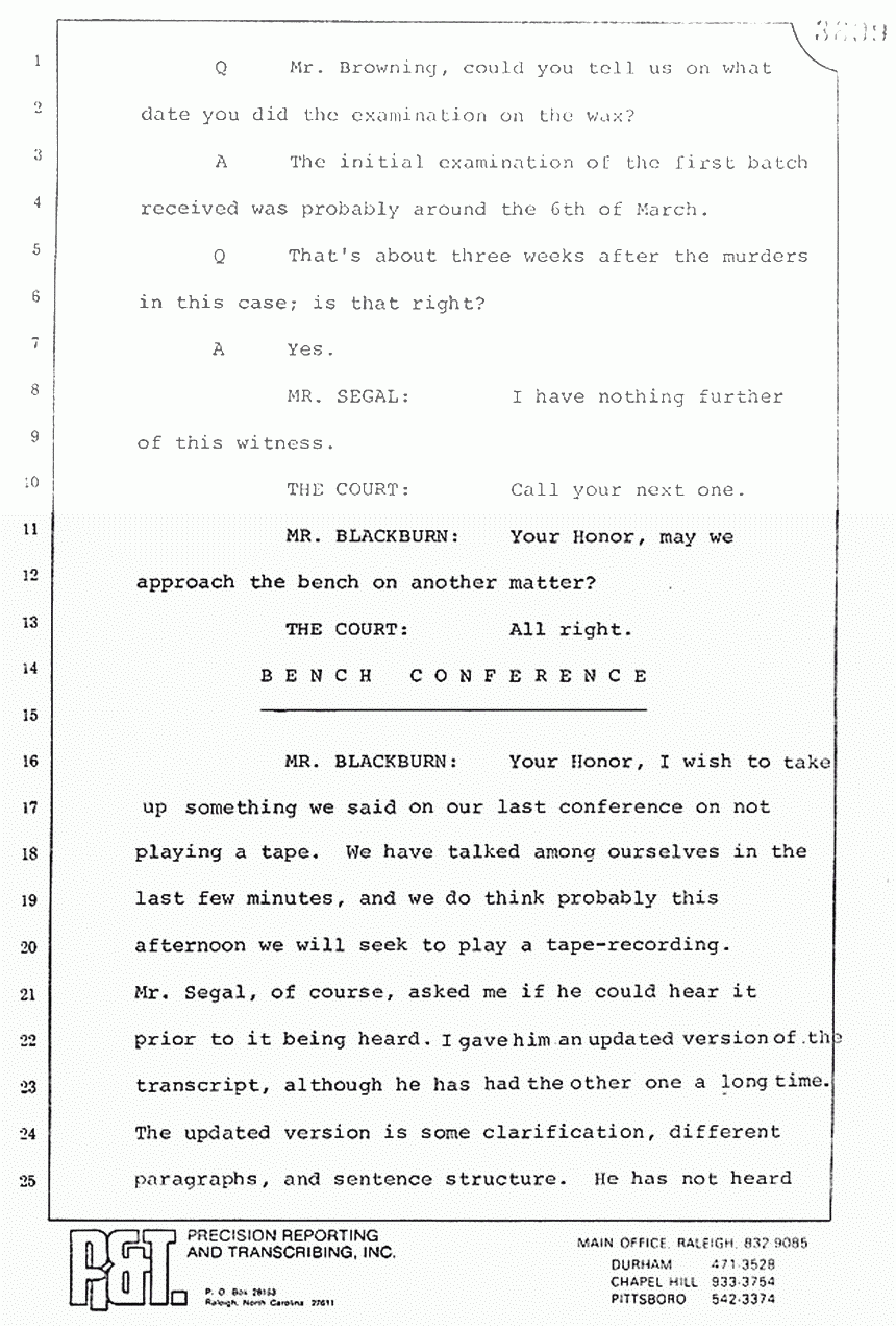 MR. MURTAGH: Your Honor, the problem with the original transcription was that as Dr. MacDonald was being asked questions, he would interject so the original transcript does not have every "uh" and "ah" in it. We will have transcripts for everyone.