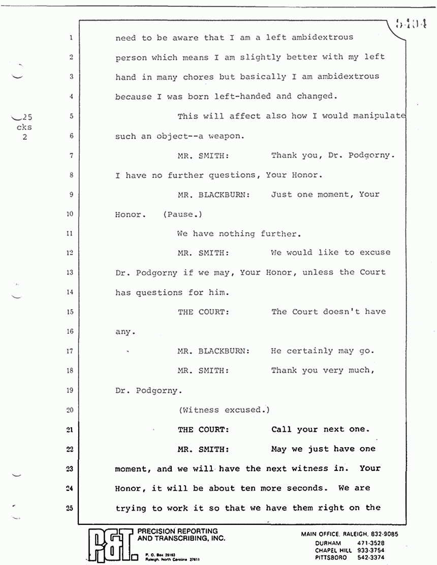 MR. SMITH: May we just have one moment, and we will have the next witness in. Your Honir, it will be about ten more seconds. We are trying to work it so that we have them right on the spot, but it takes just a moment to let them know.