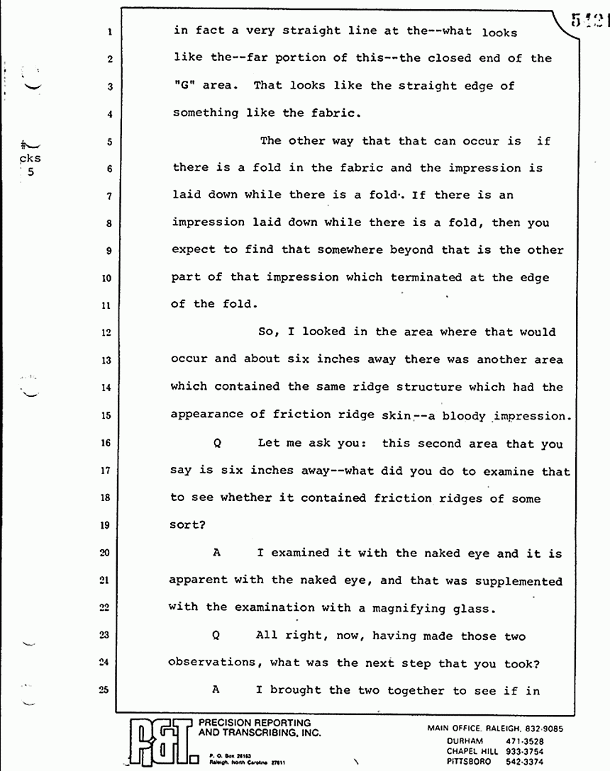 Q When I say "fingerprints," I would also like to know whether or not that included examinations of something called friction ridge impressions? Did you do any of that kind of work?