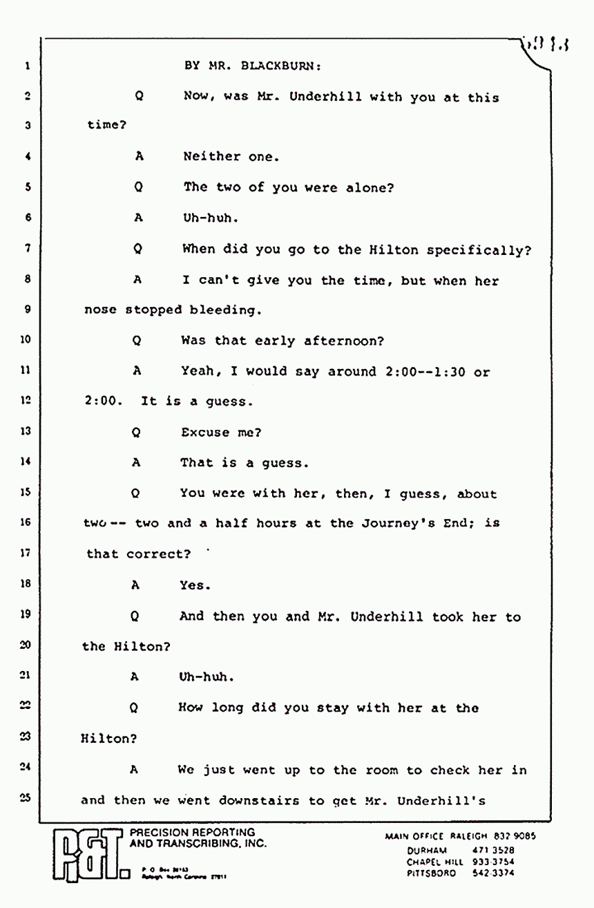 Q You were with her, then, I guess, about two -- two and a half hours at the Journey's End; is that correct?