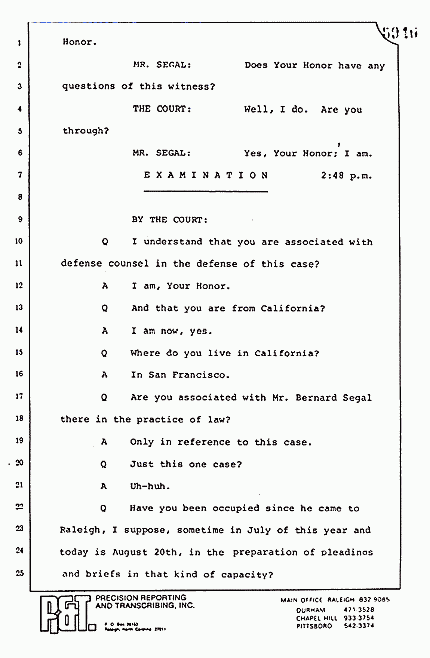 MR. SEGAL: Does Your Honor have any questions of this witness?
