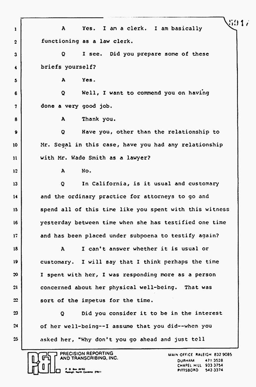 Q Did you consider that the questions that you asked her and the responses that she gave -- some of them spontaneously -- yesterday were any different in terms of equivocation from what she gave on the stand here the other day?