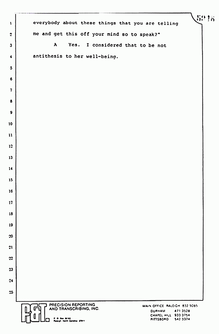 Q Did you consider it to be in the interest of her well-being -- I assume that you did -- when you asked her, "Why don't you go ahead and just tell everybody about these things that you are telling me and get this off your mind so to speak?"