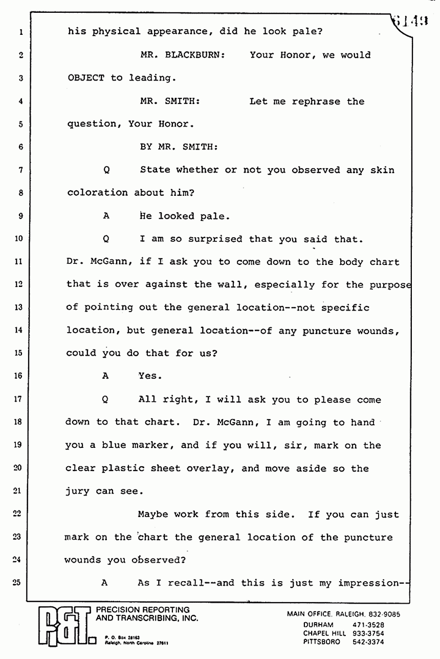 Q So, you never talked to them or read the medical records concerning the number of puncture wounds that he said he had?