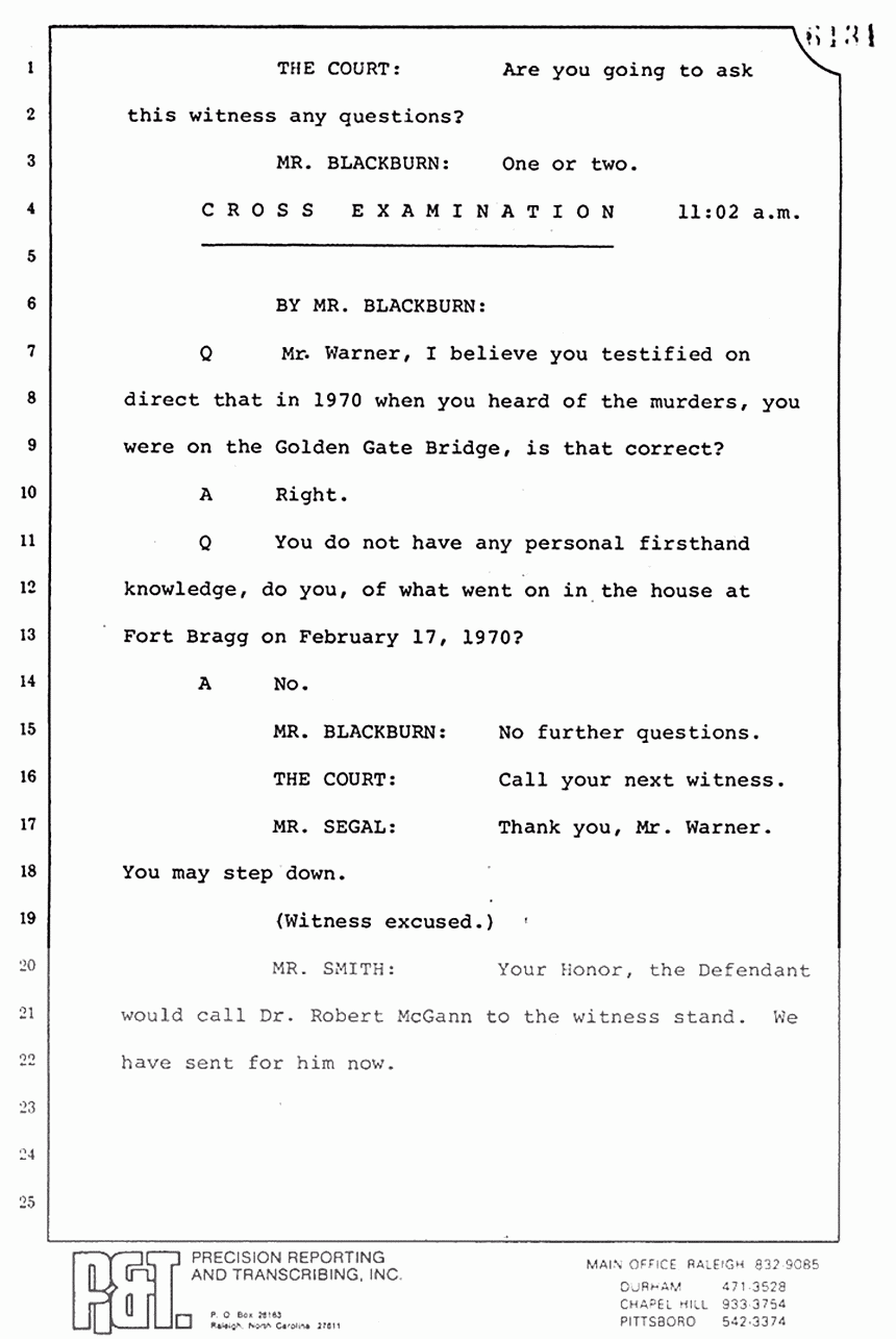 Q You do not have any personal firsthand knowledge, do you, of what went on in the house at Fort Bragg on February 17, 1970?