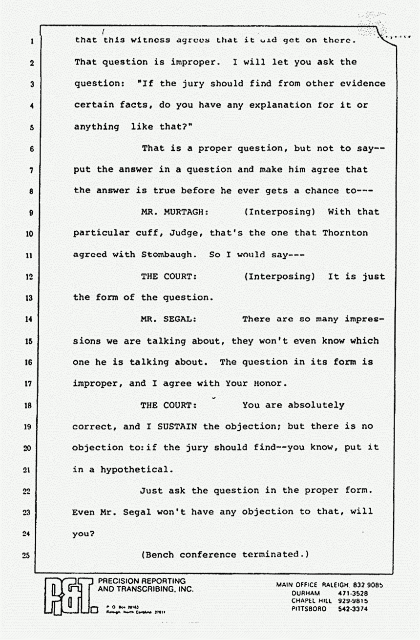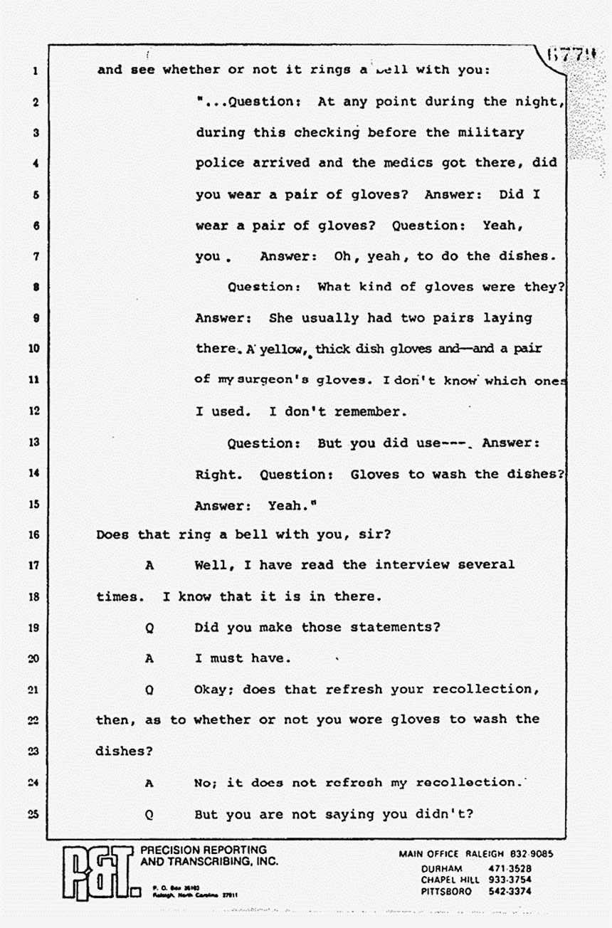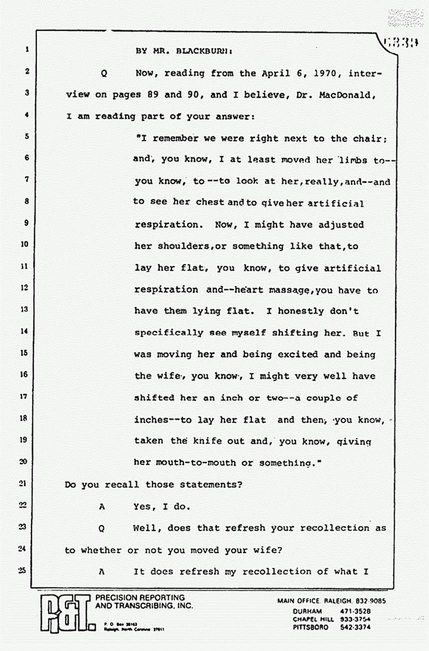 Q Dr. MacDonald, suppose the jury should find from the evidence that there is no blood or was no blood that was sufficient to be typed -- sufficient quantities to be typed -- on either the telephone in the master bedroom or the kitchen and that they should find from the evidence that you went there and used the phone as you have indicated; do you have any explanation for why there would be no blood?