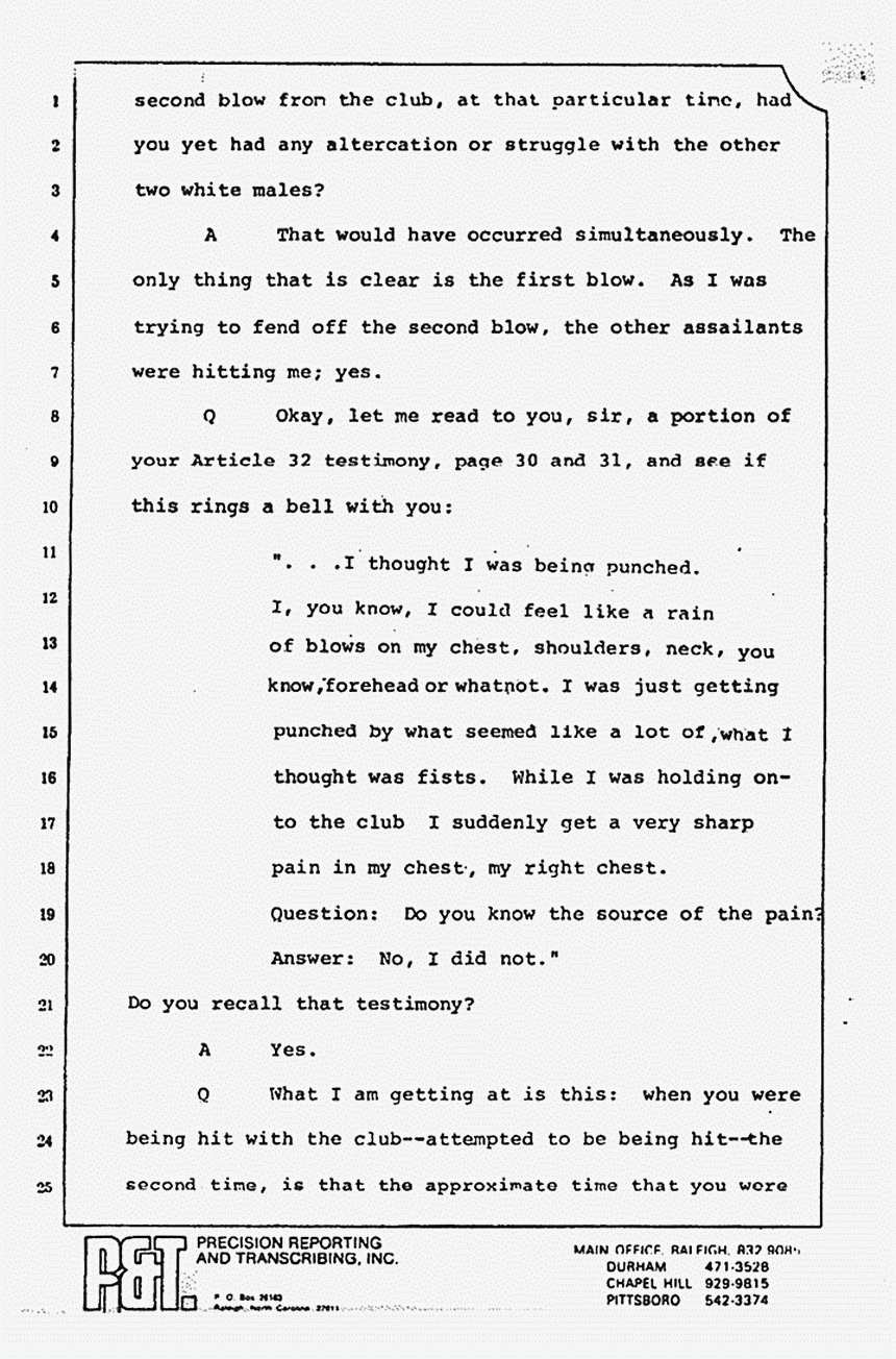 Q Now, if you can recall -- I remember you testified yesterday that you went to Hamlet Hospital on the weekend prior to the 16th of February?