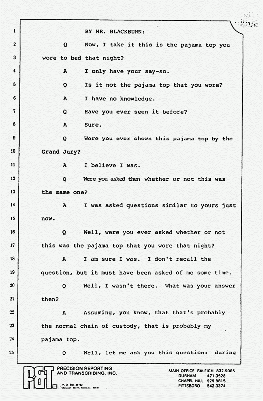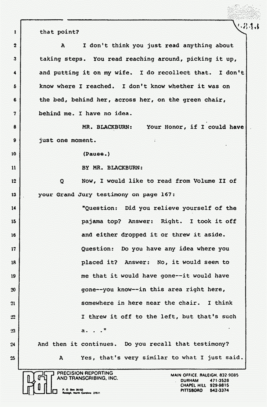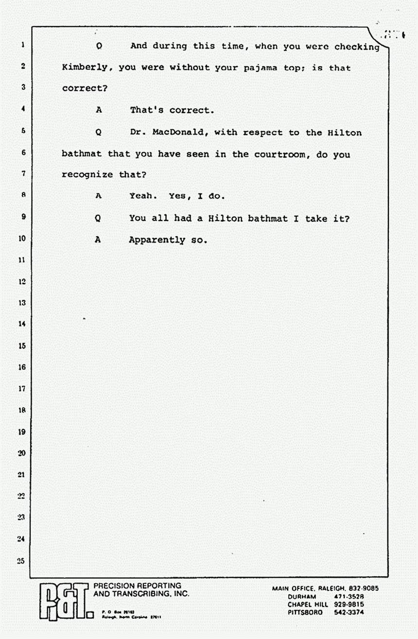 Q Dr. MacDonald, suppose the jury should find from the evidence that Type B blood, the same type as yours, is found in only one place on the blue pajama top belonging to you. Do you have any explanation for that, sir?