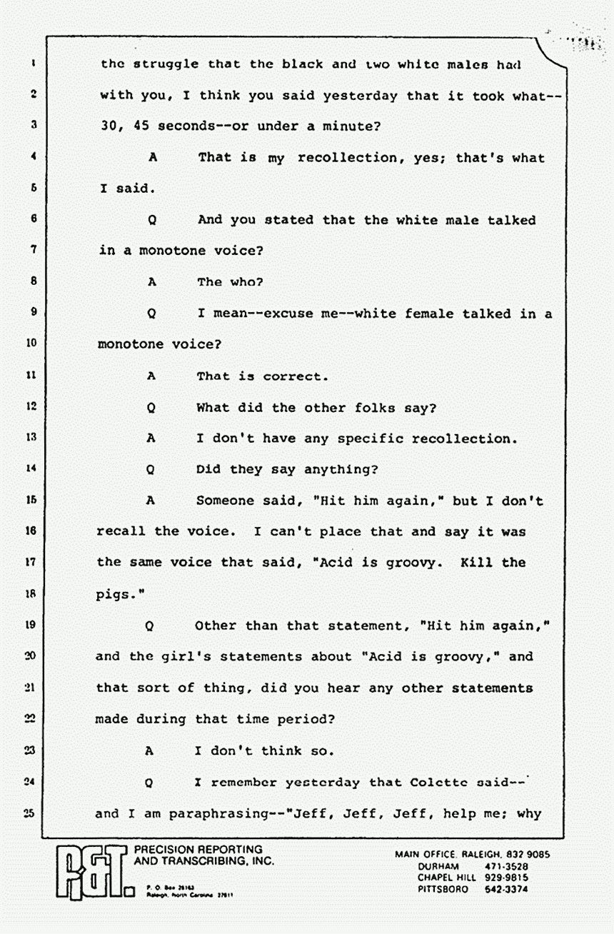Q Dr. MacDonald, suppose the jury should find from the evidence that Colette MacDonald was beaten and stabbed a multiple number of times, that Kristen was stabbed a number of times, and that Kimberly was stabbed and beaten a number of times.
