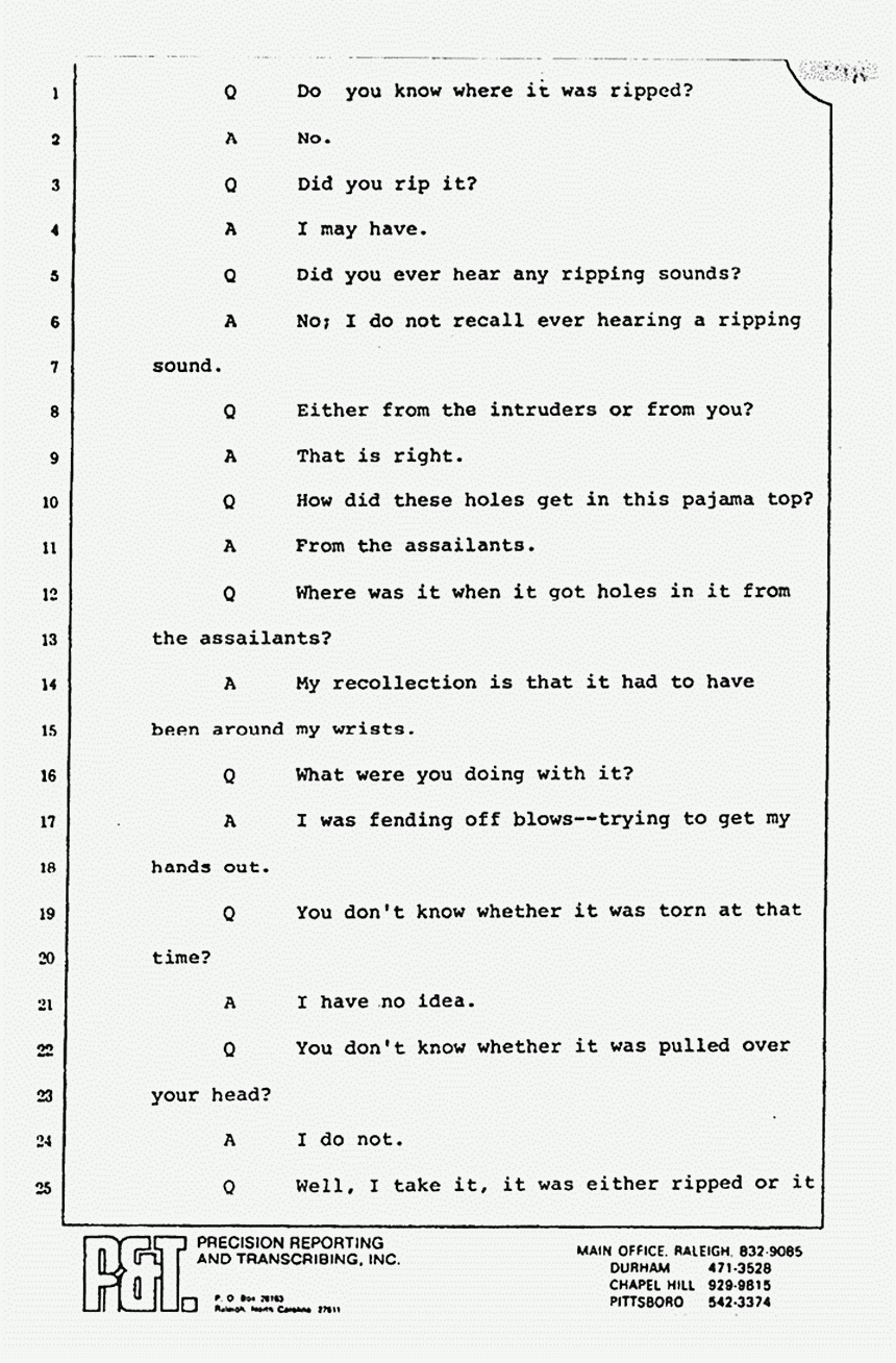 Q With respect to my question, sir, do you have any explanation for how those holes got in the back of that pajama top?